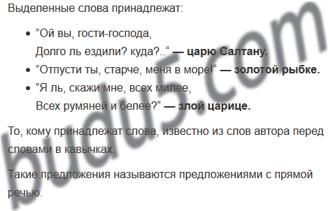 Прочитай. Кому принадлежат выделенные слова? Откуда это известно? Обрати внимание, как на письме оформлены выделенные слова. Как бы ты назвал такие предложения?