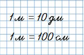 1 м = дм | 3 дм = м | 4 см = мм |