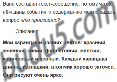 Ваня получил задание составить текст-описание. Определите, текст какого типа у него получился. Докажите. Дополните текст описанием.