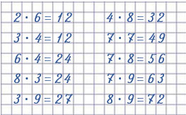 7. При умножении каких двух однозначных чисел может получиться 12; 24: 27; 32; 49; 56; 63; 72?