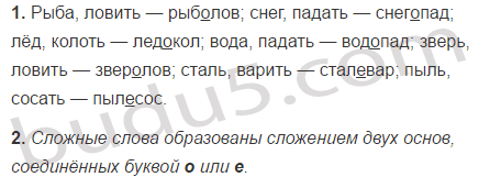 Сложные слова образованы от двух слов с помощью соединительной гласной о или е.