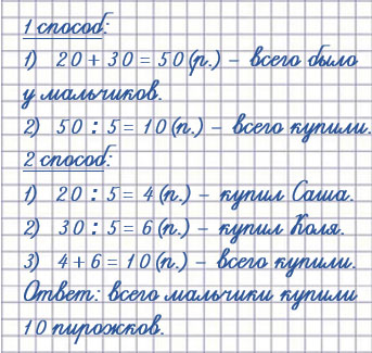 У Саши было 20 р., а у Коли 30 р. Мальчики купили на все деньги пирожки по 5 р. каждый. Сколько всего пирожков купили мальчики?