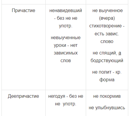 Составьте таблицу "Не с разными частями речи" (слева по вертикали поместите названия частей речи, а справа по горизонтали - наименования способов присоединения не). Заполните таблицу примерами, обозначая в них условия выбора слитного и раздельного написания не.