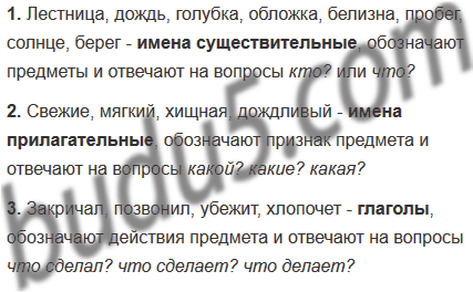 Определяй часть речи по тому, что слово обозначает и на какой вопрос отвечает.