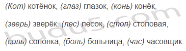 Котёнок, глазок, конёк, зверёк, лесок, столовая, солонка, больница, часовщик.