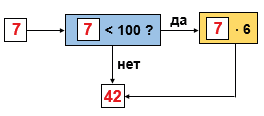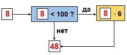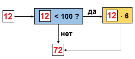 Если поступающее на входе число меньше 100, то нужно умножить его на 6.