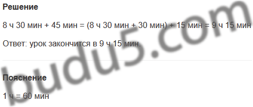 28. Занятия начинаются в 8 ч 30 мин. В котором часу закончится первый урок, если он продолжается 45 мин?