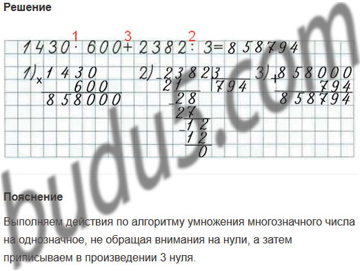 Повтори алгоритм письменного умножения многозначных чисел.