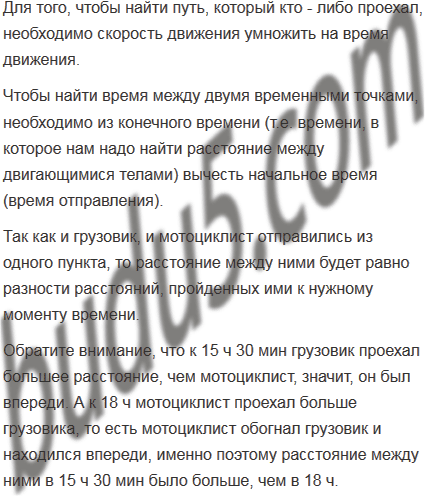 В 10 ч из пункта А выехал грузовик со скоростью 42,4 км/ч, а в 13 ч 30 мин из этого пункта в том же направлении выехал мотоциклист со скоростью 78,5 км/ч. Какое расстояние будет между ними в 15 ч 30 мин? В 18 ч?
