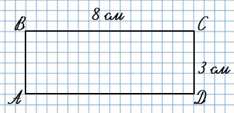 2) 8 • 2 + 3 • 2 = 22 (см) - периметр прямоугольника.
