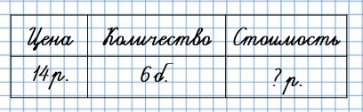 6) Билет до станции "Полевая" стоит 14 р. Сколько надо заплатить за 6 таких билетов?