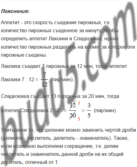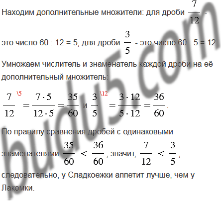 Лакомка съедает 7 пирожных за 12 мин, а Сладкоежка - 13 пирожных за 20 мин. У кого аппетит лучше - у Лакомки или у Сладкоежки?