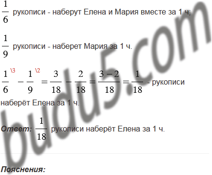 Елена и Мария могут вместе набрать текст рукописи за 6 ч. Какую часть рукописи наберёт Елена за 1 ч, если Мария может набрать текст всей рукописи за 9 ч?