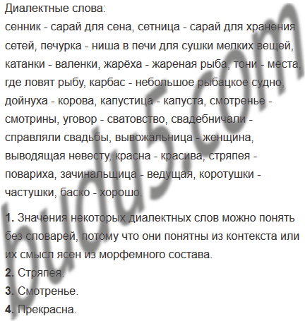 Прочитайте текст. Какие непонятные диалектные слова встретились вам в рассказе? Выпишите и расскажите, как вы понимаете их значения. Используйте сведения, данные на полях.