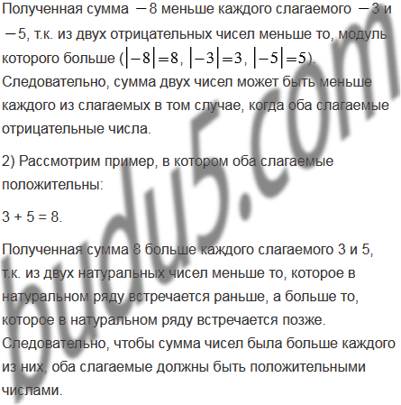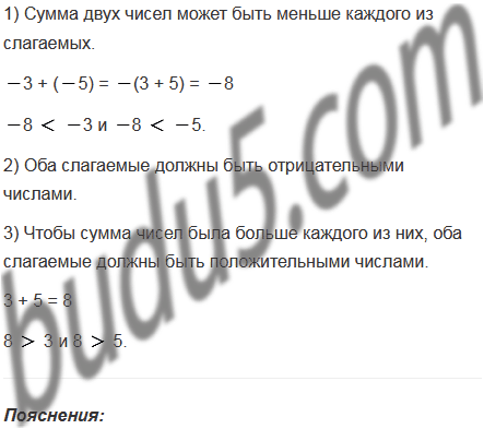 Может ли сумма двух чисел быть меньше каждого из слагаемых? В случае утвердительного ответа приведите пример. Какими числами должны быть в этом случае слагаемые? Какими числами должны быть слагаемые, чтобы их сумма была больше каждого из них?