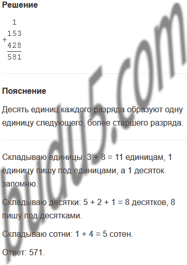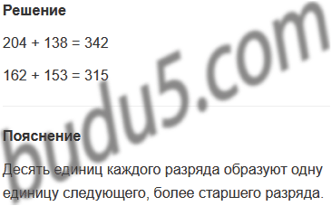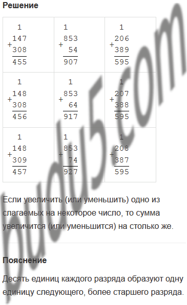 Задание № 4. Придумай пример на сложение трёхзначных чисел с переходом через разряд и найди ответ.