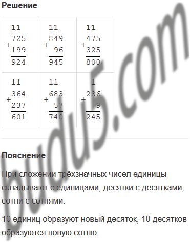 Повтори алгоритм письменного сложения трёхзначных чисел.