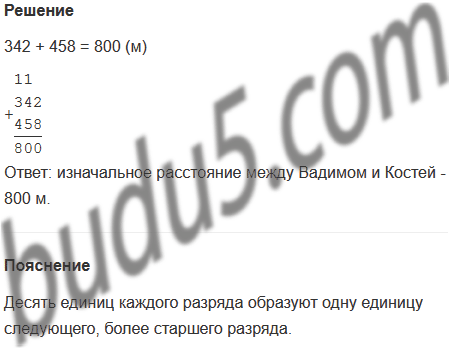 Задание № 3. Вадим и Костя идут навстречу друг другу. Вадим прошёл до места встречи 242 м, а Костя - 458 м. Какое расстояние было между ними изначально?