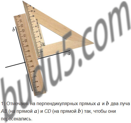 Начертите два перпендикулярных луча так, чтобы они: 1) пересекались; 2) не имели общих точек.