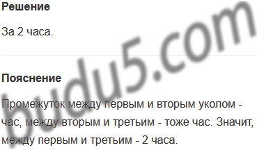 Задание № 12. Врач назначил больному три укола, по одному через каждый час. За какое время будет сделаны все уколы?