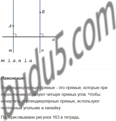 Перерисуйте в тетрадь рисунок 163. Через каждую из точек А и В проведите прямую, перпендикулярную прямой .