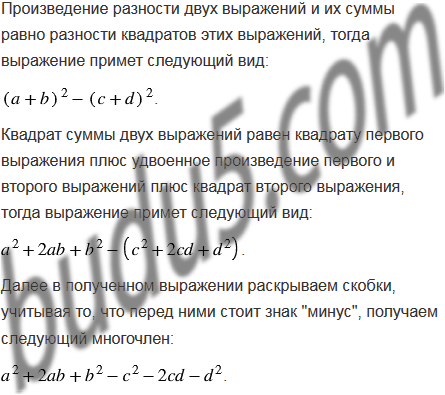 Используя формулы сокращенного умножения, представьте в виде многочлена выражение: