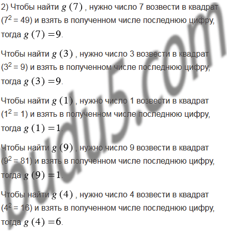 , заданную следующим правилом: каждому однозначному натуральному числу поставили в соответствие последнюю цифру его квадрата. найдите: 1) область определения и область значений функции; 2)