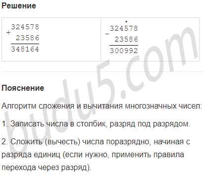 Задание № 4. Что ты умеешь делать с многозначными числами? Чему надо научиться? Попробуй сложить и вычесть два многозначных числа по своему выбору. Сделай вывод.