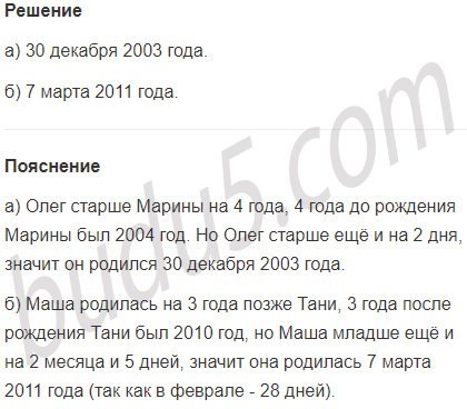 б) Маша младше Тани на 3 года, 2 месяца и 5 дней. Таня родилась 30 декабря 2007 года. Когда день рождения у Маши?
