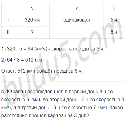 б) Поезд проходит 320 км за 5 ч. Какое расстояние он пройдёт за 8 ч, двигаясь с этой же скоростью?