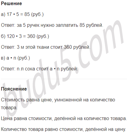Повтори денежную единицу - рубль, а также взаимосвязь между ценой, количеством и стоимостью.