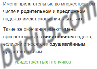 Имена прилагательные во множественном числе в родительном и предложном падежах имеют окончания: - ых, -их.