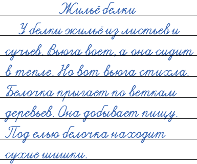 У белки жил..ё из лист..ев и суч..ев. В..юга воет, а она сидит в т..пле. Но вот в..юга стихла. Белоч..ка прыгает по веткам дерев..ев. Она добывает пищу. Под ел..ю белоч..ка находит сухие шишки.
