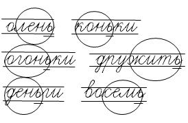 Задание 2. Прочитай. Какое слово «спряталось» в каждом из слов? Обведи его в кружок. Подчеркни мягкий знак (ь).