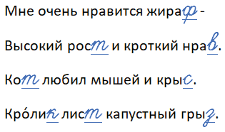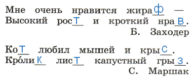 Задание 6. Прочитай. Вставь в слова пропущенные буквы.
