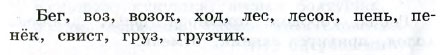 1. слова из корня и нулевого окончания (бег , воз , ход , лес , пень , свист , груз )